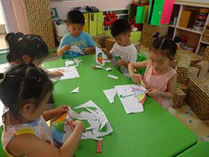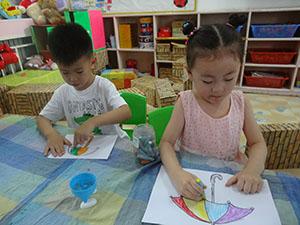 本周主题哗啦啦,下雨了,小五班小朋友在制作美丽的雨伞,先帮雨伞涂上漂亮的颜色,然后用剪刀顺着伞的轮廓剪下来,可爱的小雨伞就制作完成了,小朋友们都特别认真的制作。通过这个活动不仅锻炼了幼儿的动手能力,还用绘画剪贴的方式进行装饰。