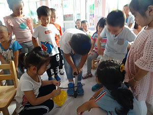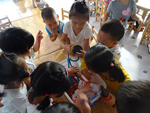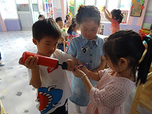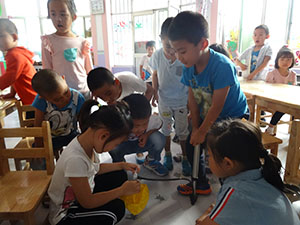 ,我们班的小朋友也由原来的小一班升到了中一班,大家都非常高兴,我们打算用气球来装扮教室,瞧!我们小朋友多棒呀,我们一起讨论如何充气、充气工具如何使用、小朋友们怎么合作。瞧,不断尝试,不断总结,气球终于充好了。