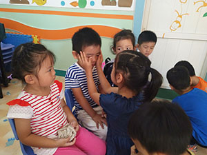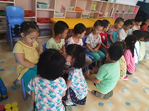 小班的弟弟妹妹开学有一段时间了,偶尔还能听到他们的哭泣声,大一班的宝贝们作为大哥哥大姐姐,决定去帮助他们,给他们带去欢乐。于是我们走进小三班,照顾弟弟妹妹,跟他们聊聊天,给他们擦眼泪、表演节目、讲个笑话,大家玩的真开心。最后弟弟妹妹们要吃加餐了,我们还教给他们正确的洗手方法,记得这还是刚入园时哥哥姐姐教给我们的呢。通过这次活动,小朋友们真正体会到了作为哥哥姐姐的自豪感,学会了恰当表达关爱的情感。