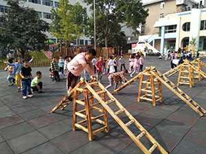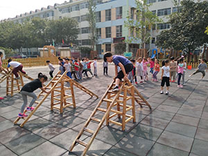 幼儿园又添新玩具了,大一班小朋友们盼望已久的梯子游戏开始啦!看,大家首先练习手脚交替上下梯子,然后进行了一场友谊赛。虽然有点小怕怕,但是小朋友都在鼓励中,克服了困难。在这一活动中,孩子们掌握了攀爬梯子的动作技能,同时还锻炼胆量,体验了玩梯子的乐趣。