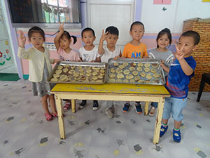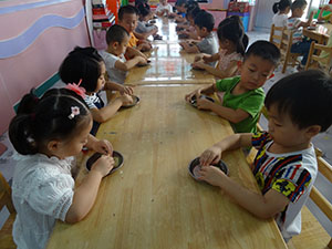 在中秋佳节到来之际,中三班开展了一节香香甜甜的烘培活动。小朋友们在老师的指导下尝试用团、压、捏、扣等技能一起制作月饼。大家还用模具制作了形状各异的漂亮的月饼送给爸爸妈妈。最后,我们一起分享品尝了自制月饼。瞧,大家吃的多开心啊!活动中小朋友不仅锻炼了动手能力,还体验了同伴分享的快乐。你还在等什么,快来动手做一做吧!