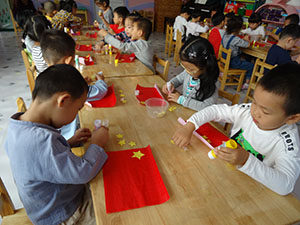 今天,中三班开展了一节意义非凡的手工课。国庆节即将到来,小朋友们在老师的指导下尝试用粘贴的方法制作国旗。大家做的可认真了。最后,大家还一起展示了各自的作品。瞧,我们的国旗漂亮吗!活动中不仅锻炼了小朋友们的动手操作能力,还产生了热爱国旗和祖国的情感,感受身为中国人自豪感。你也来动手做做看吧!