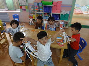 今天老师教我们中四班的小朋友们剪面条了。好高兴啊!我们先把一张张纸剪成一根根细细的面条,好有成就感呀,哈哈,希望我们下次可以把面条剪得更细一点,像真的一样,我们会加油的哦。