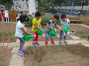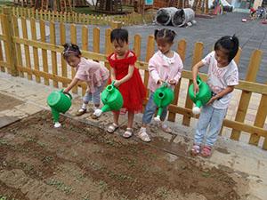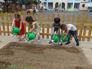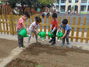 我们中四班的蔬菜宝宝已经成功种在地里了。刚种好的种子宝宝需要喝好多的水才能发芽,所以我们来给蔬菜宝宝浇水了。看着它们刚刚长出来的样子好可爱呀,真希望它们能快点长大。