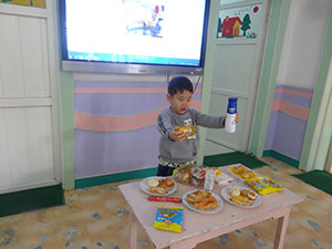 本次语言活动中孩子们能认真观察图片并讲述图片内容,并知道了吃早餐的重要性,我还为孩子们制作了各种各样的早餐,有包子、有煎蛋、有牛奶、还有油条等,孩子们兴奋极了,拿起筷子纷纷品尝。本次语言活动锻炼了幼儿语言表能力。