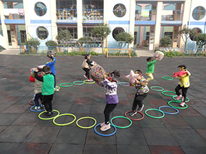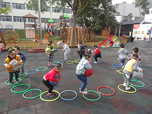 今天孩子们带上小麻雀的头饰,瞬间变成了一只只可爱的小麻雀,和老师共同做热身运动,小麻雀们需要运粮食,可是途中要经过很多圆圆的障碍,小麻雀们有的把粮食抱在怀里,有的将粮食举到头上,有的将粮食背在身上,小麻雀用双脚跳过圆圆的障碍。本次健康活动练习带物双脚跳,锻炼了幼儿四肢协调能力。