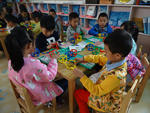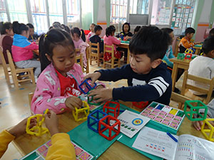几十根彩色塑料棒,在大三班孩子们的手中,分分钟变身四色正方立柱,并且还有未来建筑在孩子们手中诞生,真的是美妙极啦!!
