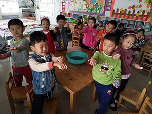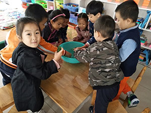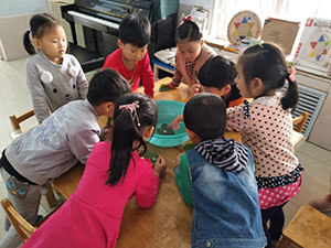 科学实验开始啦!今天大一班的宝贝们要开动小脑筋让硬币浮起来。怎样让硬币在水里浮起来呢?大家一起讨论、猜想、探索、验证并记录,都变成了小小科学家啦。通过小小的科学活动,让宝贝们感受物体的浮沉变化,发展动手和探究能力。