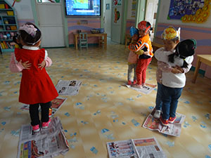 小鱼游啊游,快快乐乐找朋友,今天老师组织我们一起进行游戏《报纸游戏》,音乐响起,大家围着“快乐岛”开心的游啊游,音乐停下时,两只小鱼同时站在“快乐岛”上,相互拥抱。小朋友们都特别喜欢这个游戏,玩的开心极啦!通过这个活动让幼儿积极地参与活动,喜欢与同伴合作游戏。