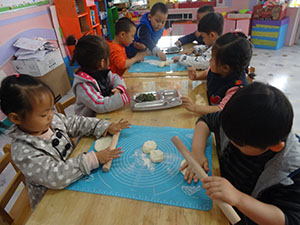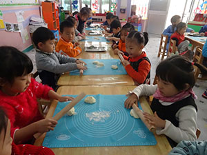 菜园里的白菜成熟了。今天,中三班的小朋友们在老师的指导下,自己动手制作美味的月牙饼。我们准备了面团、菜馅、擀面杖等用品。一切准备就绪后,大家热火朝天的做了起来。小朋友分工合作,有的擀面皮,有的填馅包成月牙饼。瞧,大家做的多认真啊!最后,我们还一起品尝了美味的月牙饼。活动中小朋友不仅锻炼了动手能力,还懂得了团结协作。你也快来动手做一做吧!