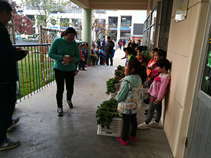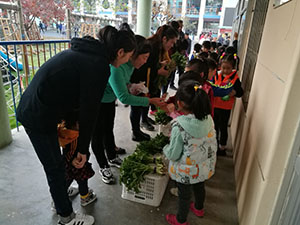 今天菜园里一片生机勃勃,成熟的青菜们像在跟我们招手诉说着收获的喜悦。我们分组分工明确,将蔬菜们整齐的放进筐子中,然后一捆一捆的打包,将柜台摆好,摆放好蔬菜,讨论菜价,商量口号,校门一开,我们的生意如此的火爆,转眼间,蔬菜一卖而空,我们收拾好工具,打扫场地,一起回班数钱喽!