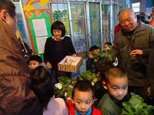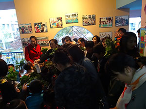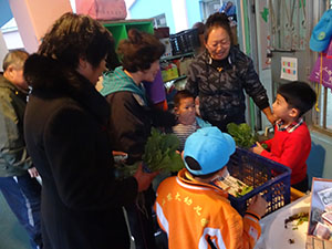 经过播种,精心浇水,间苗,我们中一班的小白菜和油菜丰收了,绿油油的青菜又嫩又新鲜,小朋友一起吆喝一起卖菜,爸爸妈妈爷爷奶奶也非常高兴,都争着买我们的有机蔬菜,看看我们卖场的热闹劲,下次你也来参加吧!