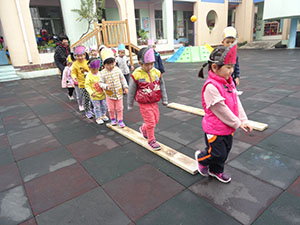 大大的枣树结满了枣子,小五班的孩子们走小路、过独木桥,不怕困难的帮助老奶奶运送大枣,这个活动锻炼了孩子们的平衡能力和坚强、勇敢的精神,同时还体会到帮助别人的快乐。
