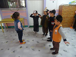 今天,中三班开展了一节生动的语言活动。小朋友们在理解故事的基础上,一起学说小动物们的对话,感受故事中分享的快乐。我们还开展了“快乐小剧场”的游戏呢,大家选择自己喜欢的头饰,通过改变语气、语调进行角色表演,体验了同伴之间相亲相爱共同游戏的乐趣。瞧,小朋友们表现的多棒呀!你也快来加入我们吧!