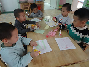 今天中二班的小朋友一起制作好吃的面条,用手撕拉彩色的纸条,用胶棒粘贴在“碗”里,小朋友们相互交换彩色的纸条,不一会功夫,五彩缤纷的面条就制作完成啦,通过这个活动不仅锻炼了幼儿的动手操作能力,还学会相互合作,体验分享的快乐!