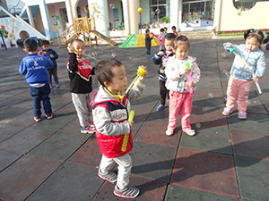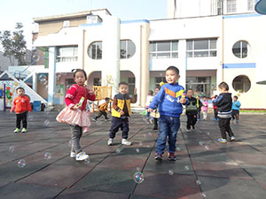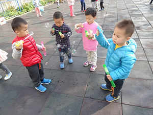 今天小三班的小朋友们在老师的带领下一起来到户外追泡泡!我们观察到圆圆的泡泡在阳光下是粉色的,是蓝色的,是绿色的.不对!不对! 泡泡上面是好多种颜色的.老师告诉我们泡泡可以说是五颜六色的.我们追玩泡泡就开始和小伙伴吹泡泡,看谁吹得多.还交换着玩,好开心啊!