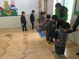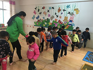 今天小一班的小朋友在王老师的带领下,和小脚丫做起了游戏。我们光着小脚丫一起走过小花园,穿过森林,爬过山坡,感受插花片、绳子、鹅卵石、豆子各种不同的物品带给小脚丫的不同感觉,凉凉的、扎扎的、痒痒的,之后小朋友穿上袜子,再次感受,比较与光脚走的时候有何不同。最后王老师总结,小脚的好朋友袜子有保护小脚的作用,小朋友要爱护自己的小脚。这个活动锻炼了幼儿的平衡能力及口语表达能力。