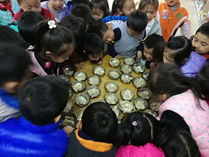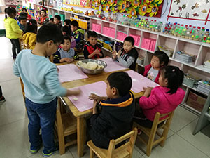 今天我们要自己动手做好吃的水饺,我们共同谈论好过程后,分配任务,有采摘白菜的、有洗菜的、有擀皮的、有包水饺的,虽然过程很复杂,但是我们还是开开心心的做着,人多力量大,香香的饺子出锅啦,我们分享给其他班的老师和小朋友后,坐下来共同享受美味水饺!我们简直太棒了!