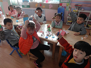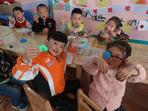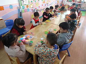 今天老师带领我们中四班的小朋友们一起用彩泥制作了油菜饼,跟做真的油菜饼步骤是一样的,只不过不能吃,哈哈。首先,我们需要和面,我们用浅色彩泥揉成面团,压成面皮儿,然后用绿绿的彩泥当油菜馅儿,最后我们把面皮儿合起来,做成了菜饼。