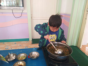 我们小一班的香菜收获了,孩子们亲手采摘,将其洗净,每个人都感受了一下翻炒的感觉,最后大家进行分享品尝;本次社会活动丰富了幼儿的生活经验以及动手操作能力。