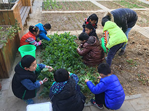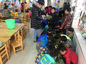 菜园里的白菜全都长大了,我们今天要做好吃的白菜粉条肉,清晨来到幼儿园,我们去菜园里采摘,不一会的功夫满满两大桶的白菜全部被我们带回,小朋友们分成好几组开始择菜,一点一点弄的干干净净,然后清洗后,一起进行切、炒、炖,耐心等待着香喷喷的菜。不一会的功夫好吃的菜做好了,我们分发好后,先分享再品尝,教室里满屋香气,像家一样。