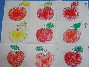 今天小三班的小朋友们在老师的带领下,在教室里给喜欢的苹果涂鸦!一个个苹果在小伙伴们的笔下诞生了,红色的、绿色的、黄色的等等.认识不同品种苹果的同时还给自己喜欢的苹果穿上漂亮衣服.瞧!我们的苹果多么好看啊!欢迎来小三班欣赏!