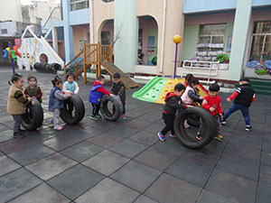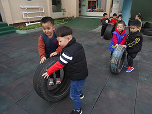 今天小四班的小朋友进行户外活动《玩轮胎》,小朋友们探索轮胎有几种不同的玩法,两人合作滚轮胎,分小组轮流条轮胎等简单的游戏。体验与同伴合作游戏的乐趣。瞧,我们棒不棒呀~