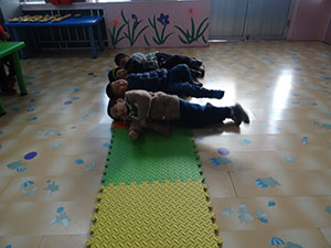 小五班的孩子们通过观察皮球的滚动探索了自己身体可以滚动的部位,尝试小手、身体骨碌碌,体验了身体滚动带来的快乐。