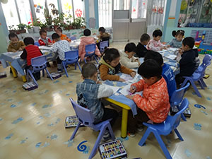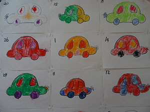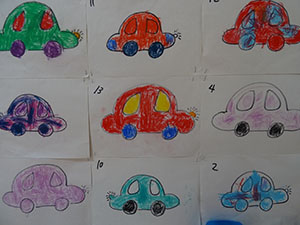 今天小三班的小朋友们在教室里认识了好多不同的车,这不正开心的添画小轿车呢!添画的同时增强孩子们的色彩其分配,以及形状的简单认识。圆的车轮,雨滴状的车窗。瞧!一辆一辆色彩鲜亮的小汽车开过来了,欢迎来小三班找出你喜欢的小轿车!
