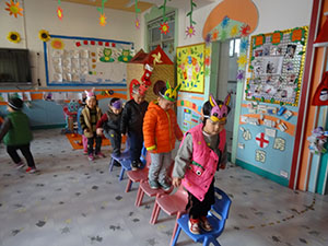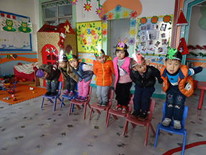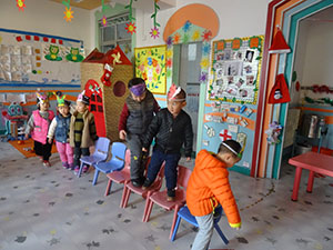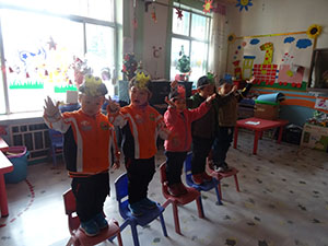 今天小四班的小朋友进行体育游戏《小动物们学本领》。练习从20-30厘米高处往下跳,发展腿部肌肉力量,在学跳的过程中,体验参与体育活动的乐趣。