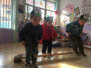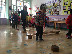 呱呱呱,小青蛙长大了,是时候学点跳跃的本领啦~今天小一班的小朋友变身成为小青蛙,在“青蛙妈妈”的带领下,学习了双脚跳,我们一起跳过“小河”,跳上小木桩再跳下来,全程进行了2~3次,真高兴啊!这节健康活动锻炼了幼儿的跳跃能力及平衡能力。