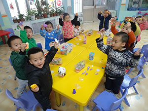 今天小三班的小朋友们在教室里进行了包饺子游戏。看小伙伴们认真动手操作着,和面、调馅有模有样的进行着。有时还交流着制作经验,“这是胡萝卜味道的,我妈妈就是这样包水饺给我吃的。”哈哈!小伙伴们制作的水饺是各种各样口味的。锻炼小手肌肉、手眼协调的同时还发挥了小伙伴们的想象力。快来看看小三班的水饺那个款式你喜欢的。