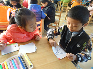 一沓画纸,几盒彩色笔,在大三班小朋友们手中,变身出了美妙的《西游记》故事,有“石猴出世”,有“大闹天宫”,有“八戒吃瓜”,还有“真假猴王”。