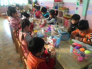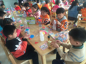 今天老师带着中二班的小朋友一起制作《漂亮的创意花瓶》,先让小朋友们了解并掌握装饰瓶子的方法,再择选自己喜欢的瓶子,然后用橡皮泥、线绳、皱纹纸等不同材料进行了装饰。瞧!小朋友们制作的多认真呀,不一会儿的功夫,漂亮的花瓶就制作完成了。通过这个活动不仅锻炼了幼儿的动手能力,还能感受彩泥等不同材料装饰瓶子所带来的美的体验!