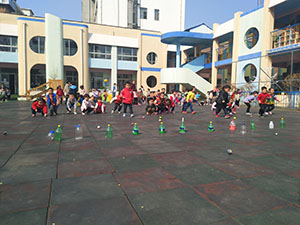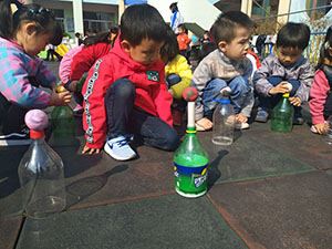 小一班的小朋友运用太空泥制作了“好玩的太空球”,然后与废旧可乐瓶子相结合,孩子们创新了好多玩法,有的将太空泥放在瓶子口上掌握平衡;有的将太空球滚出好远,再用可乐瓶子去追,看谁扣的准;还有的幼儿运用可乐瓶子将太空球抛向高空,再立即接住;本次健康活动锻炼幼儿的手脑协调能力和幼儿在游戏中的创新能力。