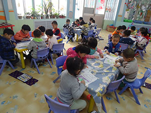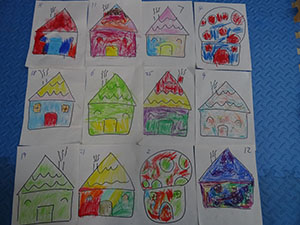 今天小三班的小朋友们在教室里展开自己的丰富想象给自己的小房子,大胆添涂喜欢的颜色.快看!小伙伴们认真地添涂着,有的小朋友还没想好,有的已经开始作画了.活动中发展小伙伴们的想象力、色彩感知以及创作乐趣.找找看你喜欢的小房子吧!