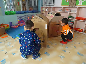 今天小三班的小朋友们在教室里尝试了欢迎来我家简单对话。瞧!小伙伴们敲敲房门有礼貌的进行问候、对话分别体验了小主人和小客人的角色转变。锻炼语言发展的同时增进小伙伴之间的友情,更是锻炼了小三班小伙伴的胆量.欢迎来我们的小房子坐客哦!