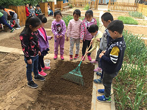 温暖的春天是播种的季节,我们大二班的五个小组要来菜园播种了!锄头、耙子等各种工具齐上阵,我们每个组种的都不一样,一组是生菜、二组是油菜、三组是油麦菜、四组是苦菊、五组是茼蒿,五种蔬菜的种子都不一样,我们把它们小心翼翼地扫到肥沃的小菜园里,比一比谁的蔬菜长的最好!
