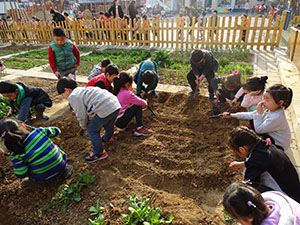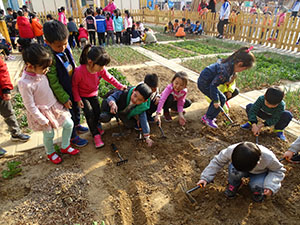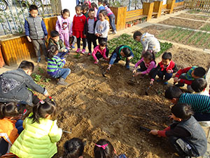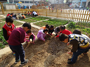 春天到啦,太阳公公暖洋洋的照着我们的小菜园,真是播种的好时候啊,我们每个小组的小伙伴都蓄势待发想要自己的菜宝宝茁壮成长,可是在种之前一定要有一块肥沃的土地呀,于是我们开始整理菜园,捡捡石头、刨刨地,听说明天有雨,我们决定接受雨婆婆赐予的礼物。