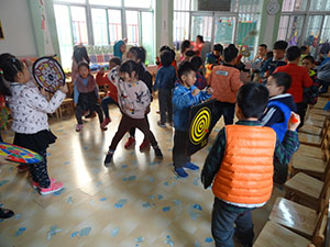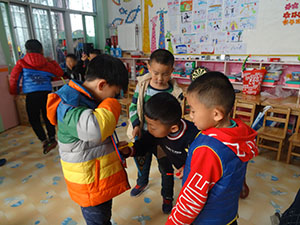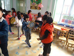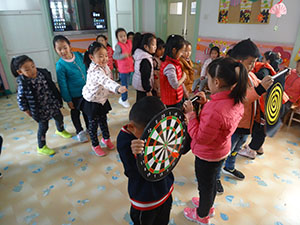 大三班正在上演一场飞镖大师赛,孩子们凝神准备,定睛瞄准,迅速出镖……反复投镖游戏中,单手侧身后转体投镖的动作技能得到了显著的提高。你也来一比高下吧?!