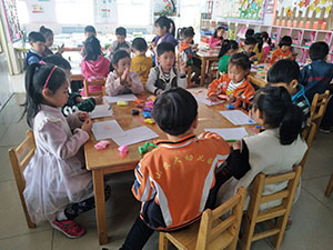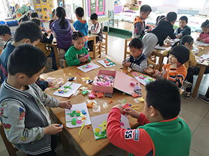 春暖花开,鸟语花香,今天大一班小朋友们将畅游在花海中。如何留住这美丽瞬间呢?小朋友们决定用泥塑创造出各种各样的花儿朵朵。活动中,宝贝们通过揉、搓、按、捏等手法做出花瓣、花心、树叶等不同的图案,还借助工具细致的做出叶脉等精细部分。这一活动,发展了幼儿欣赏美、创造美的能力,同时锻炼了幼儿动手操作的能力,让幼儿在游戏中发展手部的精细动作。
