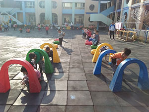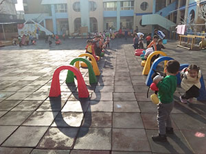 今天,我们小二班的小朋友们开展了生动的健康活动《背着娃娃去冒险》,我们背着娃娃,一起钻过山洞,跨过河流,成功到达终点。