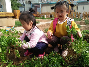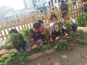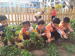 我们小二班小菜园里的香菜已经成熟了,小朋友们一起来帮忙收香菜。香菜扎的根很深,所以老师先帮忙刨一下,之后小朋友们来帮忙了。