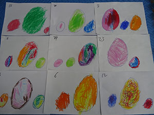 今天小三班的小伙伴们认识了新朋友,它就是蛋宝宝。这不,蛋宝宝不喜欢自己单一颜色的衣服,特意请小伙伴们给自己的换装。小伙伴们认真的装扮着自己的蛋宝宝,快来看看换装后的蛋宝宝吧!选出你喜欢的一款哦!!