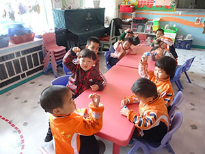 今天小四班的小朋友进行活动《大茶壶、小茶杯》的活动,小朋友们了解泡茶的过程,用简单的礼貌用语招待客人,欣赏儿歌,感受儿歌的幽默风趣。活动后把太空泥能用揉、搓、切的方式制作成小茶壶。瞧,我们制作的茶壶漂亮吗?
