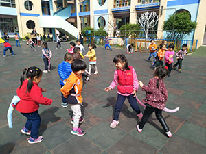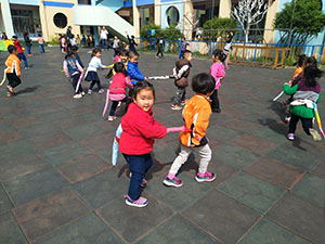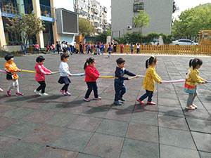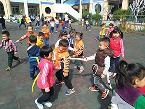 孩子们最爱在春天的户外跑一跑,动一动,瞧,我们小一班的孩子们在户外进行捉尾巴的游戏呢,孩子们分别捉住前面小朋友的尾巴进行“排火车”游戏。孩子玩的开心极了。本活动锻炼幼儿的奔跑能力和躲避能力。