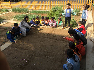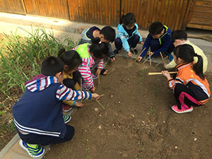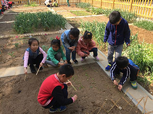 今天天气真好,我们大二班来到开心农场去看看我们自己种的菜宝宝,我们分成的五个组种的,现在已经有两个组长出了嫩芽,小芽需要耐心呵护,于是我们决定为什么的小菜园加上护栏,更好的保护好菜宝宝,小栅栏一点点的被我们做好了,菜宝宝的家更加漂亮啦!