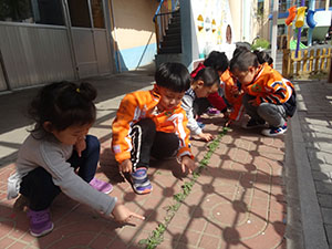 春天在哪里呀?春天在小朋友们的眼睛里。小朋友们一起在园里寻找春天的景象。叶子都绿啦~花儿都开啦~一片春天的气息呀~小朋友们好高兴呀~