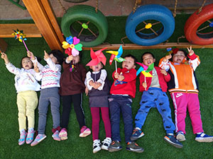 春天是彩色的季节,孩子们手中拿着五颜六色的风车在美美的校园里奔跑,开心极了。有的小朋友在研究怎样让风车转起来,有的小朋友在研究怎样让风车转的更快些...孩子们试了很多种方法,积极探索,勇敢奔跑。风车给孩子们带来了无穷的乐趣。本次健康活动锻炼了幼儿四肢协调能力和对风向、风阻的初步了解。