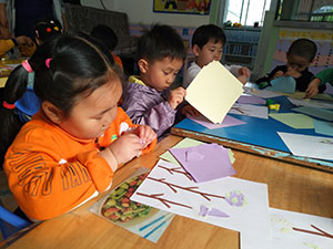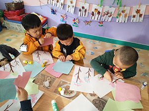 今天的活动孩子们都非常喜欢,因为孩子们可以肆无忌惮的进行撕纸,将撕下来的彩色纸片黏贴在“花杆”上,孩子们真是创意无限,有的撕成长长的花瓣、有的撕成了圆圆的花瓣、还有的撕成了落花....孩子们太棒了,评价作品时孩子们纷纷对自己的作品进行了描述。本次活动锻炼了幼儿的创新能力和语言表达能力。